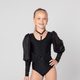 Unleash your fierce side with the new Furious Leotard! Made with wet look faux leather lycra, this leotard combines sleekness and edge in one. Its criss-cross back and sleeveless design make it a showstopper for commercial Jazz or an edgy Tap routine. For even more impact, add a Repeat wet look faux leather shrug in black or white, or choose a pop of color with our plain lycra shrugs. Get your hands on this unique dance costume and let it mold to your contours!