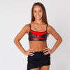 Get ready to make a statement in our Distinct Crop! Made with lux fabrics and faux leather over lycra, it's a dance class and performance must-have. The edge crop design, faux leather adjustable straps, and clip at the front add extra detail, while the wide band provides support and style. Plus, removable padding for adult sizing. Perfectly paired with our Intensive Tights, Execute Flares, and Splitz Skirt. Dance and perform with confidence and style.
